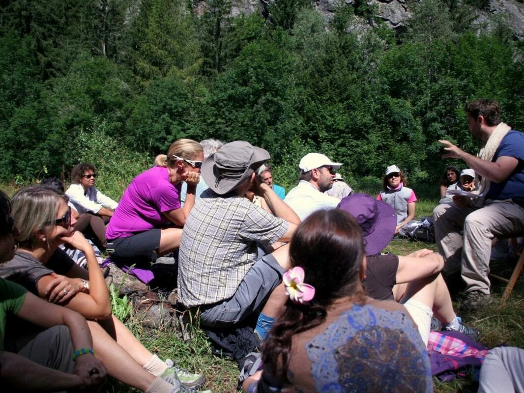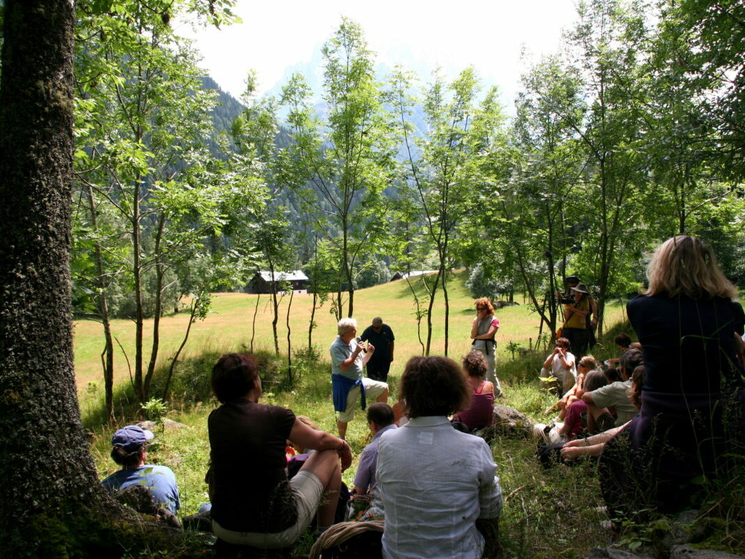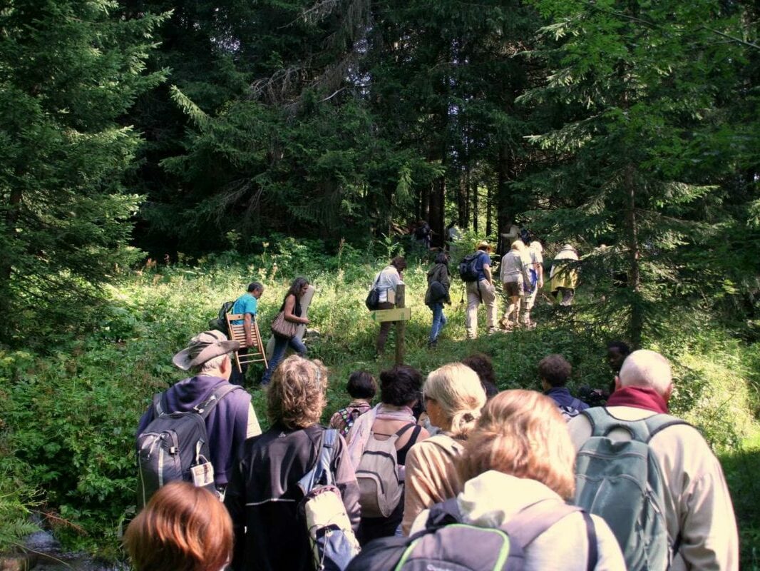 Nous avons tout naturellement souhaité commencer ce premier festival au Bois du Paradis – des Praz – puis nous aventurer entre forêts et clairières sur les anciens sentiers des sourciers de la vallée de Chamonix pour penser différemment notre rapport au monde, aux autres, à nous-mêmes et à la nature.